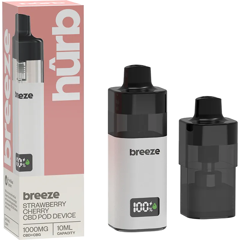 Hurb Breeze CBD Pod + Device 1000MG Hurb Breeze CBD +CBG Pod + Device 1000MG 10ML The Hรปrb Breeze Pod Kit offers vapers a simple-to-use device , utilising a pod prefilled with 10ml of 500mg CBD & CBG , perfect for easy CBD vaping on-the-go ๐ถโ๏ธ.